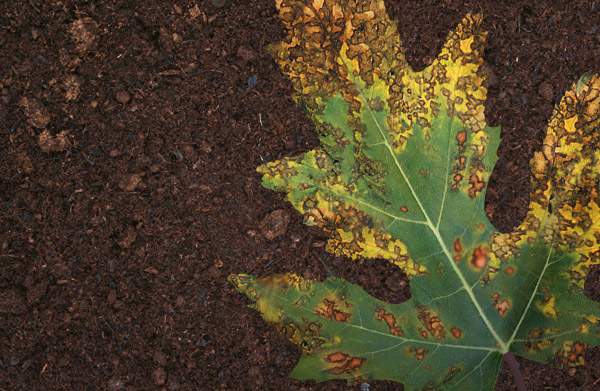 - Τα γηραιότερα φύλλα νεκρώνονται αργά και ίσως εμφανιστούν θολές κιτρινωπές κηλίδες γύρω από τις νεκρωτικές κηλίδες. Όσο γερνάει το φύλλο, τόσο σοβαρότερα είναι τα συμπτώματα.